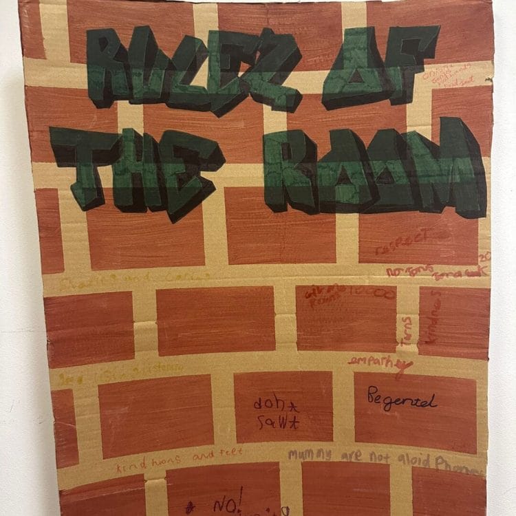 BB4K’s graffiti wall of group rules, created by the group, for the group! Each scribble, doodle and word reflects how we want to feel in our space: safe, kind and free to be ourselves.
