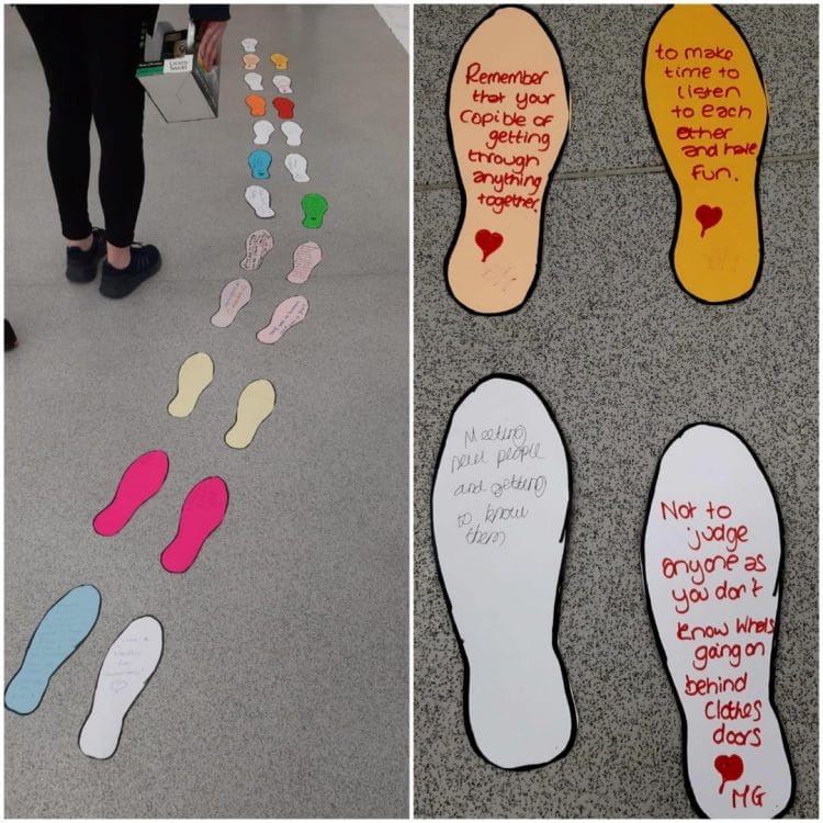 BB4K’s ‘heart to heart tree’. Heart to heart is an attachment-based group that focuses on building child and parent relationship. Written on the leaves are evaluation words of how the parent and child felt at the end of the session. Each colour resembles a different week of the programme and each leaf echoes one parent and their child.