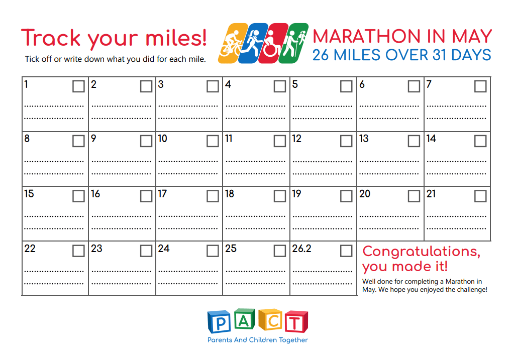 You’ve signed up for PACT’s Marathon in May 2026! We’re so glad you’re taking part in this fun and life changing challenge. Before you get your trainers on and your pooch gets their collar on, you’ll want to check out the materials on this page. They are for anyone taking part in this year’s Marathon in May. Please download and use them as you wish.